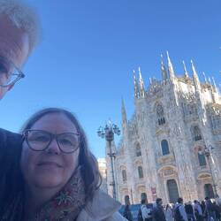 We walked to a nearby café for breakfast, then over to Nail Fata to set up Donna’s appointment later in the day. From there, we hopped onto the underground metro and headed toward the more touristy heart of Milan. A street-tour guide convinced us to join a combined museum and cathedral tour — and honestly, it was worth every euro to skip the long lines and have someone knowledgeable bring the story of the Duomo to life.