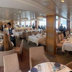 We boarded the Viking Rinda around noontime, just in time for lunch — our first meal onboard and our first real taste of ship life. The waiter offered us the house red or white, but we asked if they had a Pinot Grigio. He paused politely to confirm we had the Silver Spirits package (we do — and yes, it’s worth every penny).
