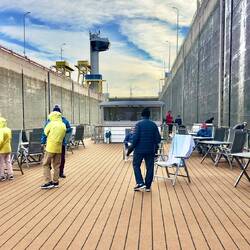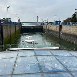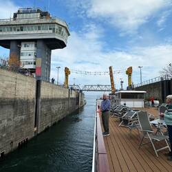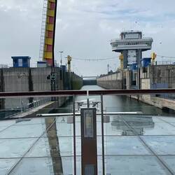 As we entered the lock, massive concrete walls rose around us. The crew tied the ship securely to the wall, and I reached out and touched it — cool, damp, and solid as history itself. Then slowly, almost imperceptibly, the Viking Rinda began to rise. The movement was so smooth that if I hadn’t been watching the changing view, I’d have sworn we weren’t moving at all.