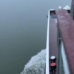 I took out my phone and recorded a short video — the dark sky, the faint mist, the rhythmic sound of the water softly crashing against the bow of the Rinda as she glided toward our next port.