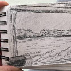 As I mentioned in an earlier post, I woke up early and shared the lounge with a few other early risers — the quiet kind of company that feels companionable without words. I had my morning cappuccino, watched the soft light drift through the fog over the Danube, and took out my sketchbook. I’ve included a quick pencil sketch from that moment — a view out the lounge window as the Rinda moved steadily upriver.