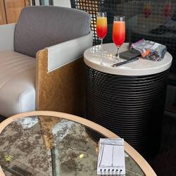 Eventually we made our way into the private arboretum — quiet, warm, peaceful. We sat with our fruit, cocktails, and tea, letting the afternoon drift a little slower. A soft pause before the next part of the day.