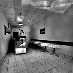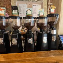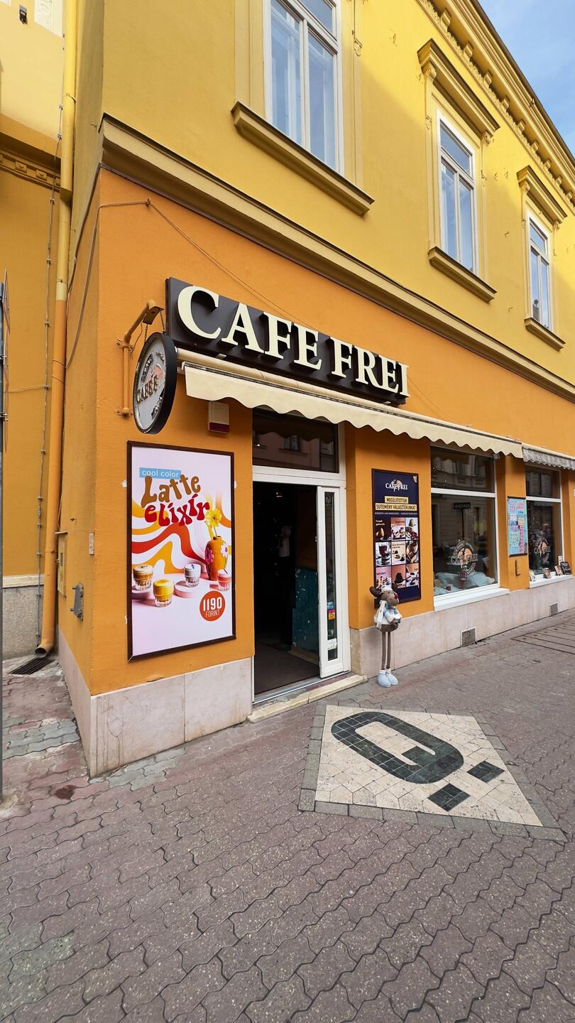 I think we took a left, then a right, and found Café Frei — quiet, simple, nondescript. We peeked in. Success! No one with a QuietVox dangling around their neck.