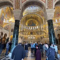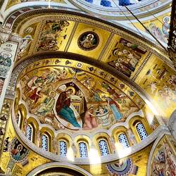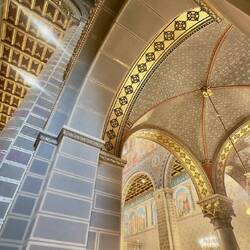 We visited the Cathedral of St. Peter & St. Paul, and the moment I stepped inside I felt swallowed by color, pattern, stone, and history. Every surface — the walls, the ceiling, the carved columns — seems to hum with stories. I kept photographing the details: the gold trim, the star-covered arches, the painted saints, the geometry of it all. It’s overwhelming in the best way.