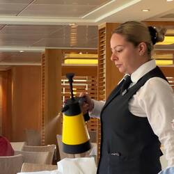 It’s peaceful this morning. No chatter, no clinking glasses, no voices competing for space. Just the sea, the ship, and me.