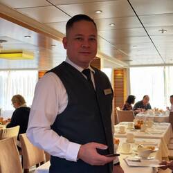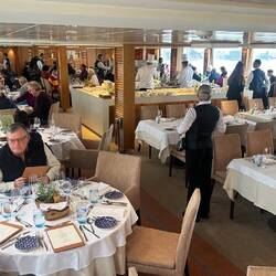 This morning I woke up around 5:30 AM. Not wanting to disturb Donna’s sleep, I quietly got dressed and slipped out to the lounge. The Viking staff were already at work — busy as church mice — making sure everything was in perfect order before the travelers stirred for the day.