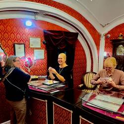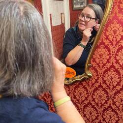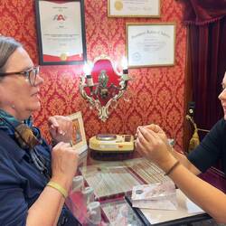 Inside, we were greeted by a woman who walked us through the options — and somehow she and Donna instantly bonded over the Savannah Bananas. I still don’t understand how baseball entered the conversation, but they were laughing like old friends.