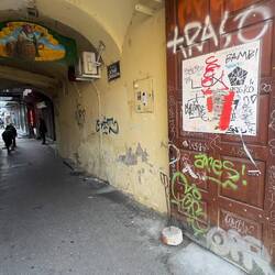 The port terminal greeted us with bright lights and modern polish, but once outside, the story changed — cobblestone streets, fading facades, and a mix of architectural eras brushing up against each other. Here, centuries collide: Roman ruins framed by glass office windows, Ottoman doorways opening beside modern cafés. The city feels like a collage of time — the old world and the new sharing the same narrow streets.