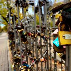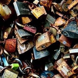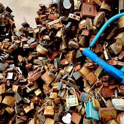 Outside, we came across another kind of human expression — the “love locks.” Entire metal structures filled with thousands of padlocks clipped on by couples over the years. Most of them are rusty now… weathered, faded, forgotten by the people who once locked them here with a promise. A few are bright and new. A strange, beautiful, messy monument to human connection. I found them oddly moving — just piles and piles of stories left behind.
