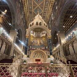 This whole area sits atop some of the most important early Christian burial sites in Europe — 4th-century Roman graves, tombs, and frescoed chambers preserved under glass. Walking through those ruins, looking at the old stone walls shaped by hands long gone, you can almost feel the weight of time pressing upward through the earth. People lived, worshipped, grieved, and buried their loved ones here 1,600 years ago… and the echoes still remain.