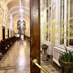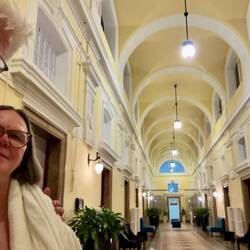 After our drinks we made our way to the massage meeting location. A staff member led us down hallways that felt like a cross between a church and a palace — high ceilings, ornate details, the kind of place you usually only see in movies.