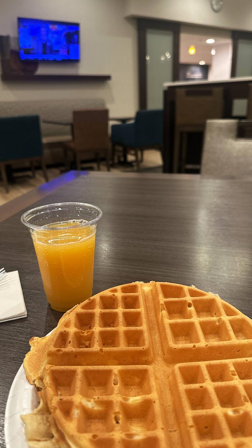 It’s 7:40 AM - I am up in the breakfast lobby having my morning waffle & coffee. Donna is still in bed - our normal routine.