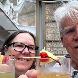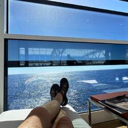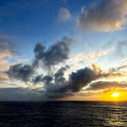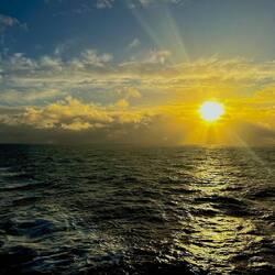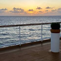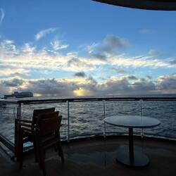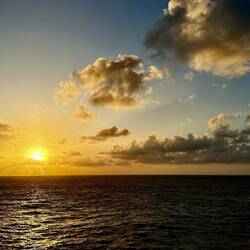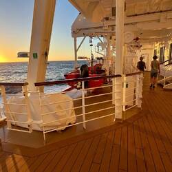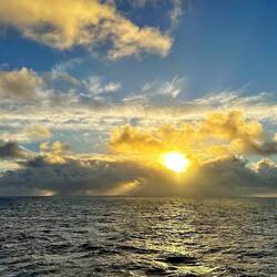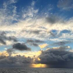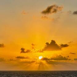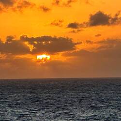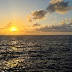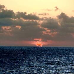 This morning I beat the sun as we both raced to start our day. The sunrise was on our port side while the ship heads in a southerly direction from Hawaii towards Bora, Bora.