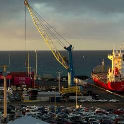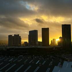 We are at port, Pier 2, in Honolulu, Hawaii. We got to bed early - surprisingly I woke up before the sunrise (7:11 A.M.) and my wake up call 5:45 A.M.) . Here are some early morning pictures from theOkumaya devam et