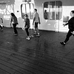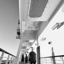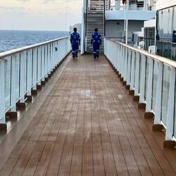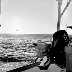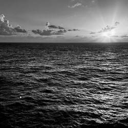 The bridge crew is guiding the Neptune westward. The sun is setting ahead of us. We will make port in Honolulu, Hawaii ahead of schedule. Sneaking out the port side door I am able to grab a snap ofOkumaya devam et
