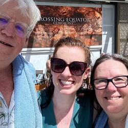 It’s official Donna and I have crossed the equator for the first time in our lives. This means we are no longer ‘polliwogs’ we have risen to “Shellback” status.