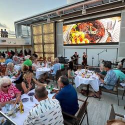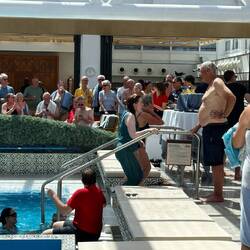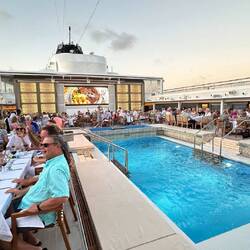 Yesterday the ship did a really fun “Surf & Turf” for everyone on the Pool Deck. It was “All hand’s on Deck” as everyone jumped in to serve us lobster, steak, bake potatoes, veggies, mac &Okumaya devam et