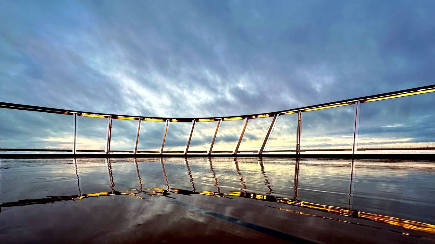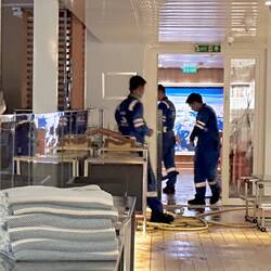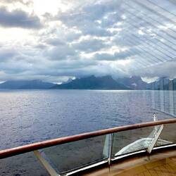 With this morning photos I had a bit of fun. A couple in B&W - and I love the one with the reflection of the people standing by the window on deck 7. They had not yet opened deck 7 outside.
