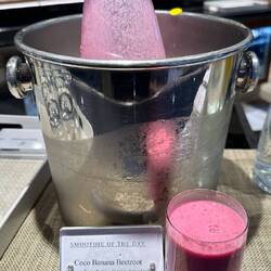So, with the Smoothie of the Day - “Coco Banana Beetroot” made up of Coconut, Beets, Banana, Nutmeg, & Almond Milk, along with my morning cappuccino - delivered by Karmila to my deck 8 front porch (see photo of my laptop setup with a view), I am left to ponder the mysteries of the day.