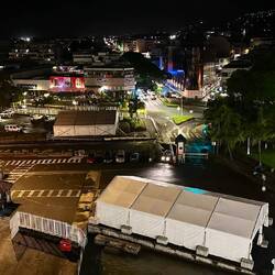 We raised anchor around 7:00 PM in Moorea, Opunoho Bay and headed to our next port Papeete, Tahiti. It was a quick trip. You can take a ferry and do it in about 45 minutes. So, our next port is very close. While eating dinner in the World Cafe off the starboard (right) sight city lights appeared and they were very close.
