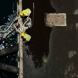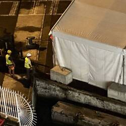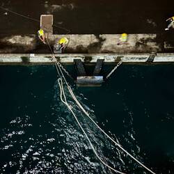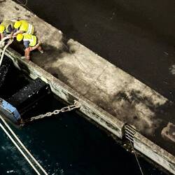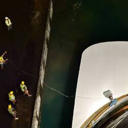 We were finishing up dinner and went out to the deck 7 stern, to watch them navigate the Neptune into the dock.