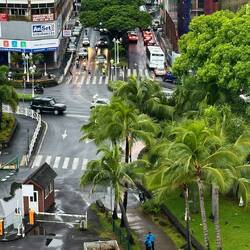 Cloud cover this morning and some rain. The city is bustling at 5:30 A.M. The morning ferry arrives, ships are making their way to port, traffic looks just like Hartford, CT.