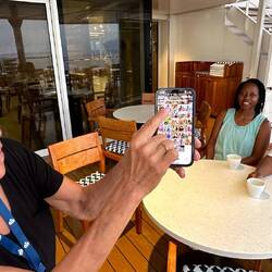 Betty creates an album called “2024 World Cruise”, takes photos of the people she meets on the cruise, annotates the image captions with people’s names and other information. I don’t do Apple Air Drop hardly ever. Betty then showed us Air Drop and was able to send her album of people to my photos so, I can then put them into a newly created album on my phone.
