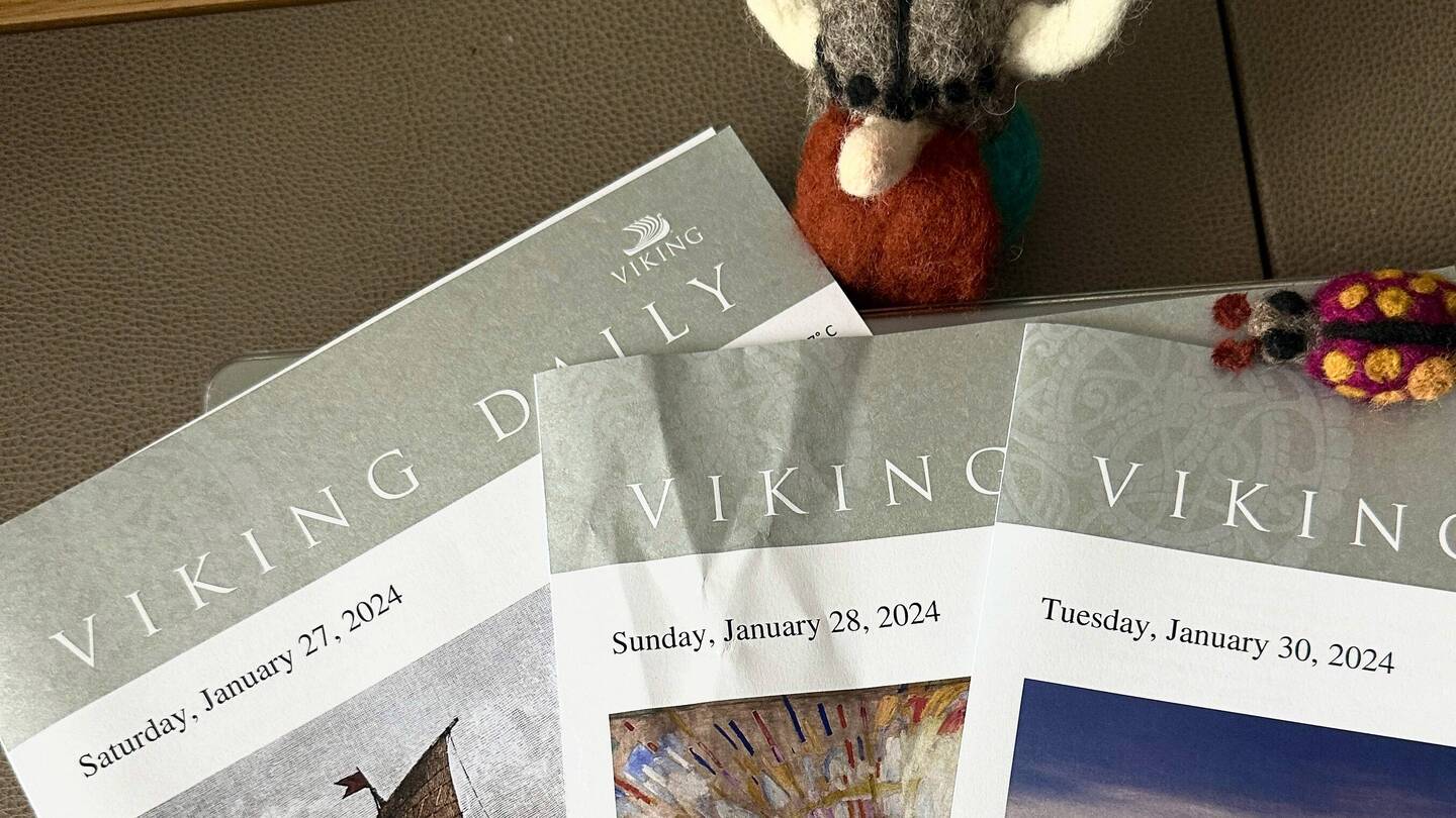 You will also see a couple of pictures of the Q&A session the Captain, Chief Engineer, and General Manager had in the Star Theater - it was a packed house. Many questions were asked and answered. Clearly, one of the big concerns is: Are we are going to go through the Red Sea, Suez Canal or not? Captain Richard says the decision has not been made - they have not been told to make any alternate plans at this point. There are so many safety & logistical concerns to consider. I personally feel that Viking will make the best choice for us first. I am sure most of us do want to go through the Suez Canal, Greece, Etc - things on our bucket list - But, I also don’t want to be on CNN as a captive cruise ship. They will make the best decision for us.