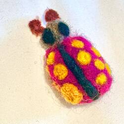 Gail Lee is one of the lecturers onboard the Neptune teaching felting. Felting is done from pure wool with a couple of speciality needles; with lots of poking and instruction from Gail - “Merle, the Viking” was born.