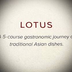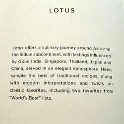 (Names L-R) Deidre, Paul, Donna, Lucy, Jonathan, & Orlando had a 7:30 dinner and didn’t leave until after 9:00. The Menu was Lotus, Asian menu - to which I will not go into the details. You can zoom in on the menu.