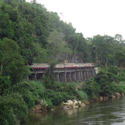 A big buffet breakfast, then off to the train station to ride the train over the River Kwai bridge on the way to Nam Tok for lunch.