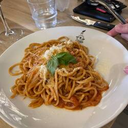 By this time we were ready for some refreshments in the form of lunch. We found a nice little restaurant as we started to retrace our steps. The staff were lovely and the food was delicious. I drank rosé and Ian had a beer. We ordered tomato salad with tuna and white onion, some croquettes and fried calamari and baby octopus. Everything was fresh and tasty, the tomatoes were like the ones my uncle used to grow, so packed with flavour.