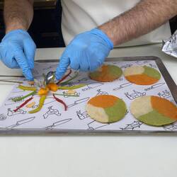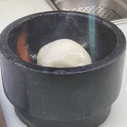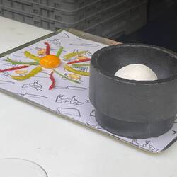 We are getting close to the finish line with two savoury dishes remaining. The first was smoked eel first cooked with a blow torch, then topped with foie gras that has been torched and finally crowned with some grated apple. It is all covered in a divine sauce. This dish was very rich but so so good. Our final dish was beef tacos. The tray arrived with an egg yolk and various strips of chilli peppers in the shape of the sun. In a bowl was a white ball, which looked like ice cream but we are told is wagyu beef covered in a layer of fat. Raphael began torching the white sphere which slowly melted, revealing a ball of chopped wagyu beef strips that were slowly cooked. As the meat cooks and the fat melts Raphael gets out the soft tacos which are in themselves a work of art and very colourful. He divides the yolk into four and smears a bit on each taco, then has a discussion with us regarding how much chilli heat we can take. We decided to stick with medium and so our tacos were assembled. They too are delicious. Finally we had a dessert to share which was a custard type thing with berries, and was a nice way to finish what had been an exceptional meal.