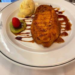 For our last dinner in Toulouse we went to the Brasserie Les Beaux-Arts, located very close to the Pont Neuf and our apartment. As we had had a very generous lunch, we decided to just have an entree and a dessert, with a bottle of Gaillac wine. It was delicious.