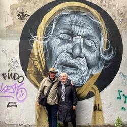 We then headed out of the cemetery and started walking towards the meeting place for our street art tour and stopped at a nice brasserie for lunch.Leer más