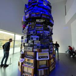 We went to Kiasma first, which is the Museum of Contemporary Art. On arrival, after securing a locker and taking off the many layers of clothing, we went to get tickets and discovered that entry was free as it was the first Friday of the month. That explained the big crowds.