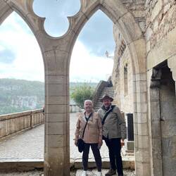 We arrived at our fabulous hotel after Jerome skilfully manoeuvred the bus through one of the four narrow town gates. (Ed - centimetre perfect!) We check in and then met Mary and the rest of the group to climb the Great Staircase up the side of the cliff, visit the Sanctuary - made up of 8 chapels including the Chapelle Notre Dame - and the “Vierge Noir” statue which was carved from the wood of a walnut tree in the 12th century. Above this, the 9th century iron bell is said to ring on its own when somewhere in the world the Virgin performs a miracle. Many recorded miracles are linked to sailors in peril at sea, hence there are boats hanging from the ceiling. Next to the chapel against the cliffs lies the Basilique Saint-Sauveur, built in the Romanesque-Gothic style, and the medieval city is also home to the crypt of Saint-Amadour, just below the basilica. As an act of penance in previous times, pilgrims would do the 216 step climb to the Sanctuary on their knees. We climbed the steps but using our feet!