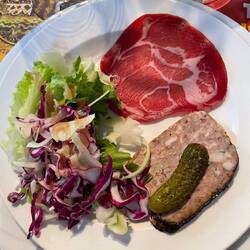 Mary was welcomed most warmly by the family and we had a wonderful time. We arrived at noon and the place was soon full of predominantly locals. The restaurant traditionally served workers who, in France, used to get 2 hours for lunch. The food is hearty and delicious.