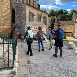 After this, we walked up the steep cobbled rue de La Citadelle to the 15th century Porte St-Jacques, with Florence pointing out some of the interesting houses, including the way that the old occupants’ names were chiseled into the stone above the doors. We continued to climb to the top of the hill to the Citadel, which was remodelled by Vauban, an architect of note in the 17th century, to double it’s capacity. It is currently an affluent private school. Florence told us that when she was a teenager, she and some of her friends cut through bars to a tunnel under the Citadel - then a military installation- and tried to explore it, but once they had got some way in were frightened by a loud noise and ran back out and away. We had great views out over the village and surrounding districts from up here.