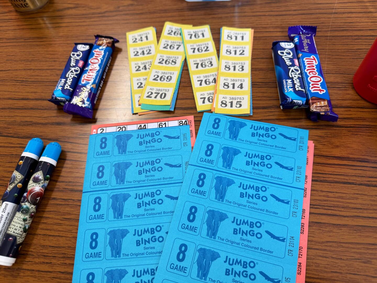 Kath and Kev host a weekly bingo in their complex on Friday nights. We had a lovely time! Dave did the calling and I delivered tea and coffee without spilling any!