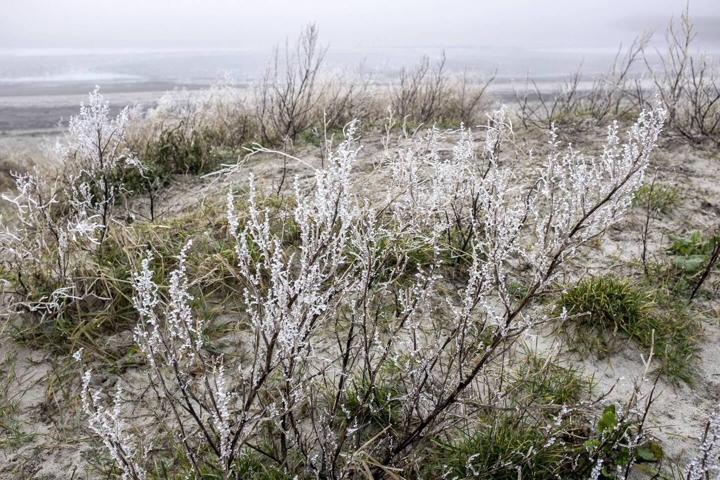 Frost on the vegetation, Harlingen beach