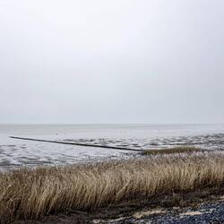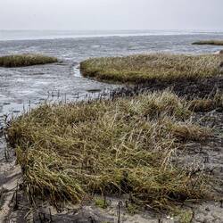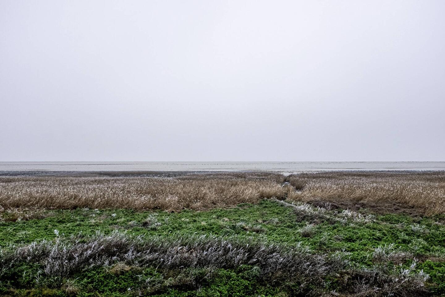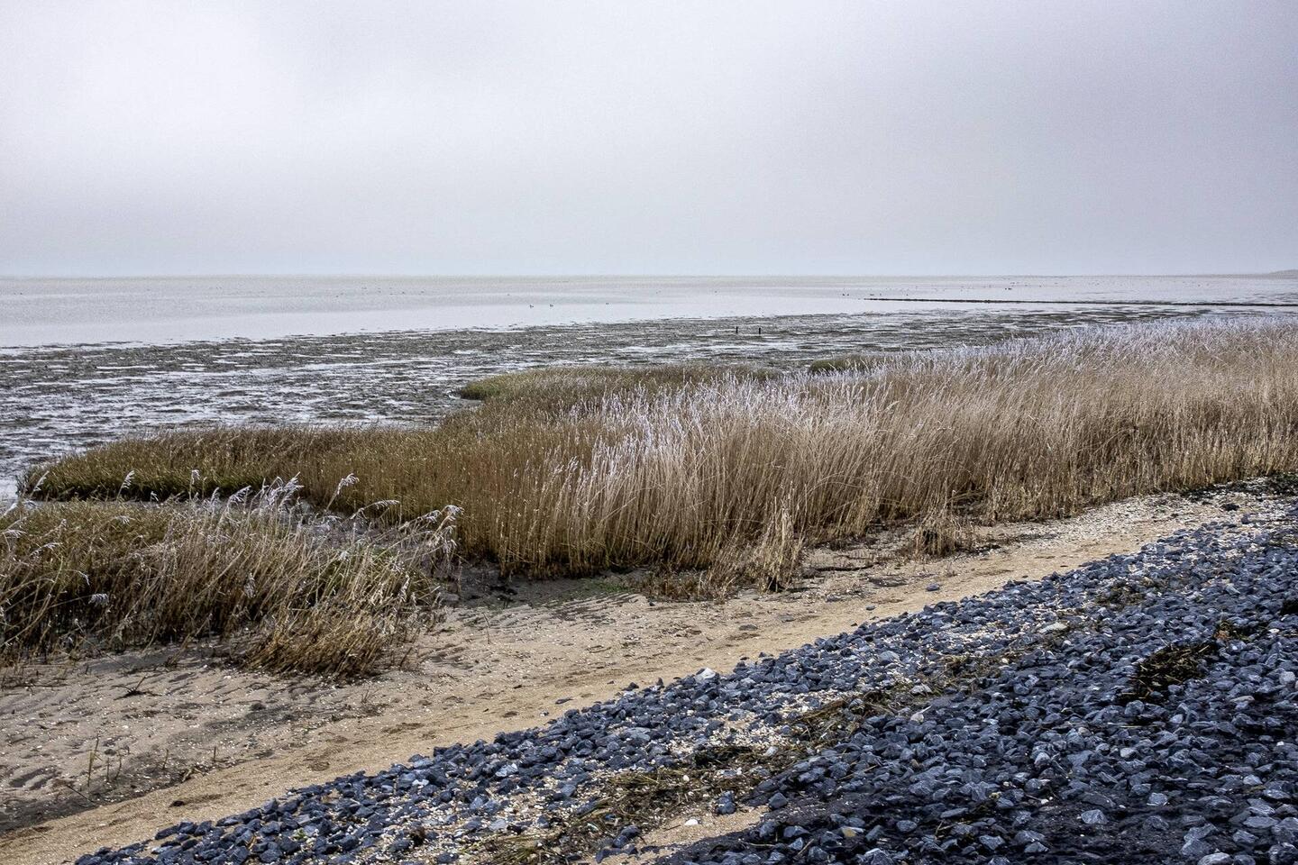 Reed beds & Wadden Sea near 'Kwelder Westhoek'.