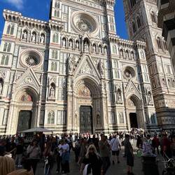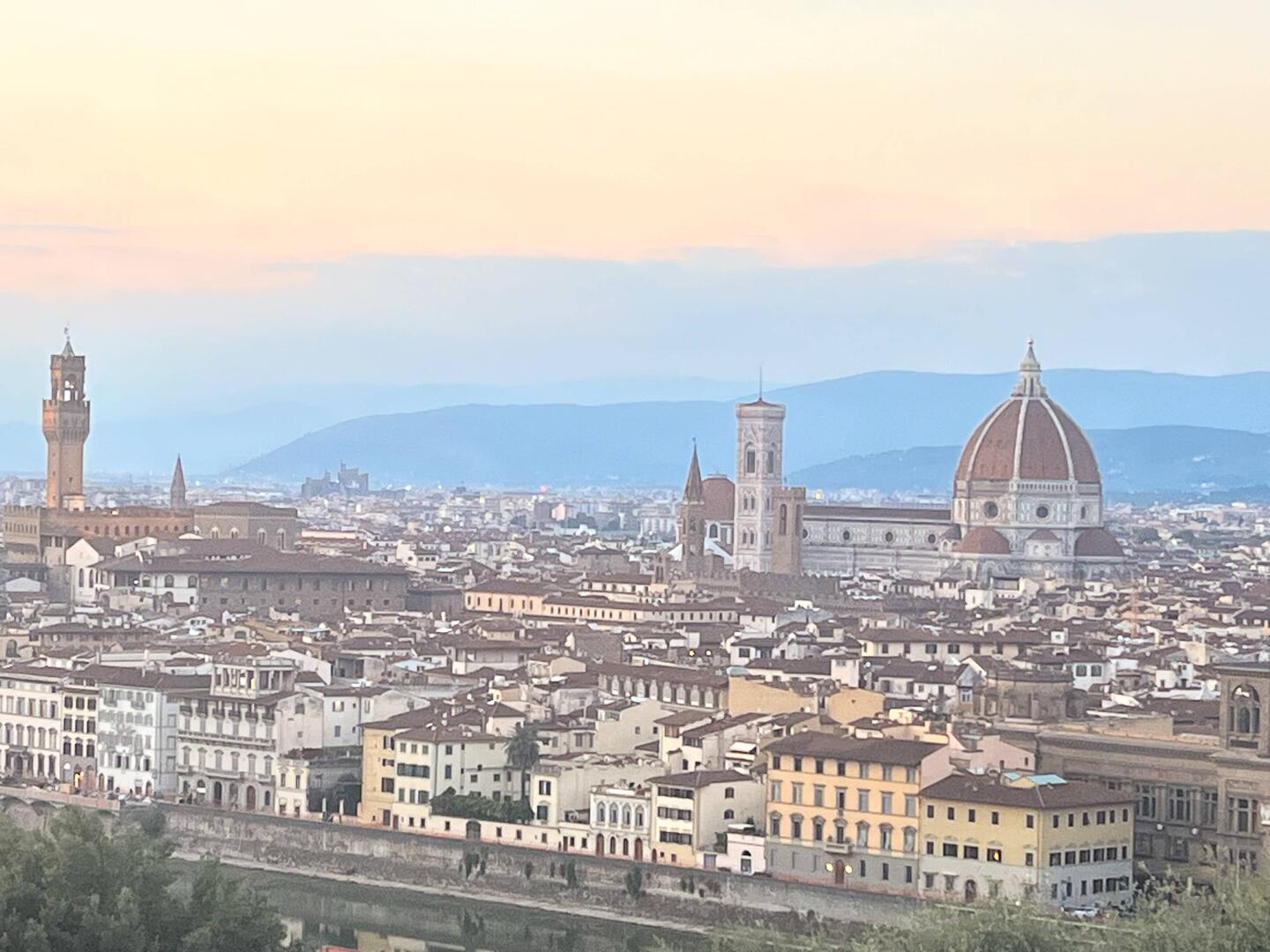 Only a short walk (more 2.5 mins than 25) from the train station to our B&B. Its on the 3rd floor, and below our huge window is a narrow, closed-off street, full of parked Vespas and the sound of people. It is close to pretty much everything. We walked to the Doma, via several churches, and then past the Uffizi, a copy of David, a few other palaces, the old bridge, some churches, and up to the hill overlooking the city for the fabled sunset.
