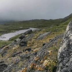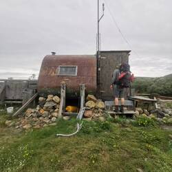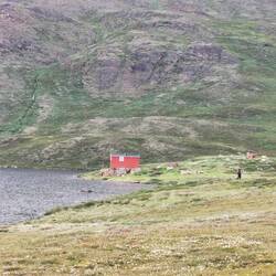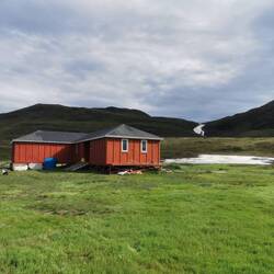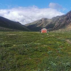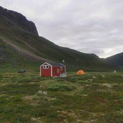 Die Dänen standen gegen 8 Uhr auf und machten sich bereit um weiter zu ziehen. Wir blieben in der wohligen Wärme unserer Schlafsäcke gehüllt und gaben uns heute mal ausgiebig Zeit zum wach werden. Wir bekamen noch ein paar Teebeutel geschenkt für meinen Hals und verabschiedeten uns von der Familie, die sich raus in den leichten Fisselregen begaben. Da nach der Hütte direkt eine Flussdurchquerung wartet, waren die drei noch immer in der Nähe, als wir mit dem Frühstück fertig waren. Wahrscheinlich mussten sie sich nach dem kalten Wasser erstmal aufwärmen. Dann verschwanden sie aber schnell am Seeufer in der Ferne. Die Sonne kam nun komplett raus und es hörte auf zu Regnen. Laut Wetterbericht sollte es nur nochmal Mittags regnen und dann trocken bleiben, aber wir merkten ja schon in den letzten Tagen, dass der Wetterbericht in den Bergen nicht so genau ist. So war es heute ein stetiger Wechsel aus leichtem Regenschauer und sonnigen Passagen - im gesamten aber trotzdem ein sehr schöner Tag. Wir nutzen diesen um unsere Haare und Socken zu waschen, fantastische Reiche zu spielen und ich las die unzähligen Gästebuch-Einträge, die seit 2011 hier niedergeschrieben wurden. Teilweise sehr amüsante und auch dramatische Einträge, darunter auch von vielen Deutschen. Meine Halsschmerzen gingen allmählich weg und wurden leider von Schnupfen abgelöst. Leider hatten wir nichts gegen Erkältungssymptome dabei, aber wir hatten zumindest Ibu's dabei. Wir dösten noch ein wenig am Nachmittag, bis ich am Seeufer einen näherkommenden Wanderer entdeckte. Ich blieb lieber im Schlafsack, aber Damian ging ihm schon mal entgegen, um zu schauen, ob er Hilfe beim Flussfurten benötigte. Er schaffte es aber alleine und kam nach dem Angebot zu einem heißen Tee zu uns in die Hütte. Wilhelm (61) war Niederländer und machte den Trail alleine. Die Moskitos hatten ihn bisher sehr geplakt, weswegen er lieber im Zelt schlief als in der Hütte und wollte auch heute noch ca. 6 km weiter. Er musste die Strecke in 7 Tagen schaffen, damit er seinen Flug erwischen konnte. Das war schon sehr ambitioniert, vor allem da er sehr unrund ging und schon ziemlich steif war. Wir unterhielten uns super nett, über unsere und seine nächsten Etappen. Für uns würde es wohl nur noch eine schwierige Furt in zwei Tagen geben, der Rest war wohl machbar. Er gab uns noch ein paar Tipps für Wanderungen in Island und Essenstipps in Sisimiut, die vor allem Damian mit Freude entgegenblickte 😂. Wilhelm wartete den nächsten Regenschauer noch ab und dann lies er uns wieder alleine. Mir ging es leider etwas schlechter, weswegen ich mich nochmals kurz hinlegte. Dann aßen wir zu Abend und genossen dabei die Abendsonne. Danach ging es dann wieder in den Schlafsack mit der Hoffnung, dass ich morgen wieder etwas fitter bin. Um kurz vor 9 versuchten wir dann zu schlafen, um am nächsten Tag wieder früh starten zu können.Read more