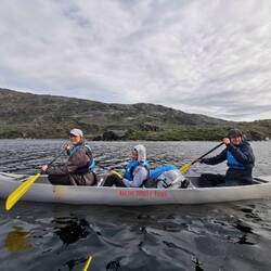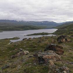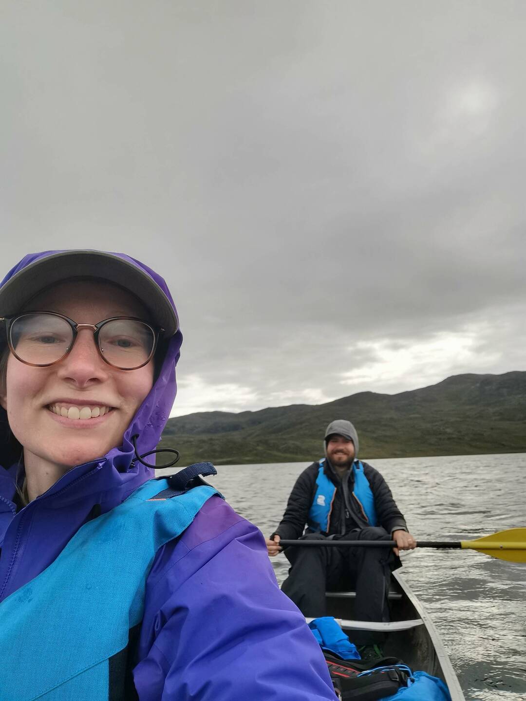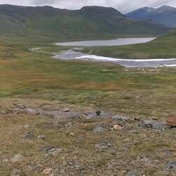 Auch dieses Mal war die Wettervorhersage unseres Satellitentelefons recht genau und der Regen hörte stellenweise ab 8 Uhr auf. Wir klärten mit den beiden Deutschen ab, dass wir die Kanus für die nächste Etappe nehmen werden, um den wohl sehr nassen Weg am See umgehen zu können. Sie wollten dazu noch die Tschechin mit ins Boot nehmen, die als letzte gestern zur Hütte gekommen war. Es dauerte ein wenig bis wir alles gepackt hatten, da es leider immer wieder zu regnen anfing. Dann verabschiedeten wir uns von den anderen, da Susanna, Jan sowie das dänische Paar alle ihre Tour hier beendeten. Susanna, weil sie es körperlich nicht schaffte, Jan und die anderen, weil sie den Track letztes Jahr schon gemacht hatten und deswegen auf die Aussicht auf stetig nasse Füße verzichten wollten. So fuhren wir bei stetig besser werdendem Wetter mit den Kanus los und waren dabei auch erstaunlich zügig. Für die 20 km brauchten wir nur 3 1/2 Stunden, kamen dafür aber mit recht schweren Armen am Kanucenter an. Die beiden Deutschen wollten noch weiter gehen und schauen wie weit sie es schaffen - wir blieben wegen der Wetteraussichten doch lieber hier, damit wir morgen zumindest mit einem trockenem Zelt loslaufen können, wenn auch der Regen bis Vormittags sich wieder halten soll. Morgen wird es eine heftige Tour sein mit 22 km und 600 hm. Wir wissen noch nicht so ganz, ob wir die Strecke komplett schaffen werden - werden es aber auf jeden Fall versuchen. Jetzt ruhen wir uns erstmal etwas aus, genießen noch ein wenig die Sonne, die sich immer wieder blicken lässt und werden dann in der trockenen, wenn auch ein wenig muffigen Hütte schlafen.Read more