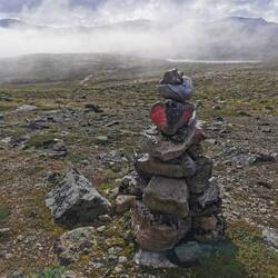 Wir hatten danach noch ca. 2 1/2 km und ein paar Höhenmeter vor uns, die wir total platt hinter uns brachten. Die Hütte lag unglaublich schön am Berghang mit Blick auf den Fjord und wir hatten sie für uns ganz alleine. So konnten wir unseren Hochzeitstag wenigstens noch ein wenig bei Tee und leckerem Pulled Pork genießen und jemand hatte sogar einen kleinen Bergblumenstrauß in der Hütte zurückgelassen 😊. Dass der Tag uns ganz schön mitgenommen hat, merkten wir dann kurz vorm Schlafengehen - Damian bekam für kurze Zeit stressbedingt Magendarm Probleme und bei mir starteten heftige Halsschmerzen. Wir gingen deswegen wieder früh schlafen, damit wir am nächsten Tag wenigstens ein wenig ausgeruht für die nächsten stattlichen 19 km und 600 hm sind.Read more