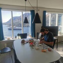 Heute ließen wir es ganz entspannt angehen und starteten mit dem ersten Kaffee seit über 10 Tagen 😅 und beobachteten das deutlich ruhigere Treiben im Hafen. Es war keine Wolke am Himmel zu sehen und es sollte den ganzen Tag so bleiben. Wir hatten den beiden Jungs aus Deutschland noch versprochen ein paar Bilder von unserer gemeinsamen Kanu Etappe zu schicken, weswegen Damian sich bei ihnen kurz meldete und fragen wollte, ob man sich vielleicht noch auf ein Getränk treffen möchte. Sie meinten am Telefon, dass sie nicht mehr im Hotel waren, sondern mittlerweile in einem Hostel am Meer, was uns sehr stutzig machte, da wir nur von unserem wussten. So ging Lasse sowie Damian gleichzeitig auf den Flur während des Telefonierens und es stellte sich einfach mal heraus, dass sie das Zimmer genau gegenüber hatten 😂. Wir tauschten noch schnell unsere Erlebnisse aus und verabredeten uns für den Abend. Dann machten die beiden sich auf, den Hausberg von Sisimiut zu besteigen und wir zogen los Richtung alten Ortskern. Danach gingen wir zum Hafen runter, zu den Kunsthandwerkstätten und zum Bootsanleger. Es war kurz vor 10 und fast so ruhig wie im Hinterland. Die Stille hielt sich sogar hier in der Stadt und wurde nur immer mal wieder vom heulen der Huskys unterbrochen, oder wenn ein Flugzeug vom kleinen Flughafen gegenüber startete oder landete. Wir reservierten uns noch ein Tisch für den nächsten Abend im einzigen größeren Restaurant am Hotel und kauften dann erstmal etwas Bier und Pizza ein für Abends 😅. Am späten Nachmittag kamen die anderen beiden zurück und zeigten uns die wirklich unfassbar schönen Bilder vom Gipfel. Danach hatten wir noch einen netten Abend zusammen im Aufenthaltsraum und machten danach noch einen kleinen Abendspaziergang. Sisimiut ist wirklich sehr hübsch, aber wir sind auch froh, dass es morgen Abend weiter geht und wir nochmal was anderes sehen werden, bevor es zurück nach Kangerlussuaq gehen wird.Read more