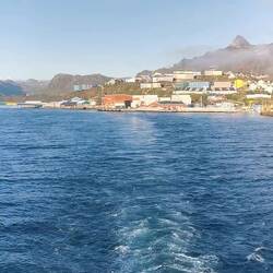 Wir freuten uns sehr Susanne wieder zu sehen und tauschten alle unsere bisherigen Erlebnisse aus. Auch nach dem Ablegen der Fähre verbrachten wir noch mit ihr und eine Dänin, die wie Susanne den Trail abbrechen musste, den Abend. Leider konnte man durch eine dichte Nebelbank die Küste nicht mehr sehen, sodass wir dann auch gegen 12 Uhr in unsere Kojen stiegen. Wir wollten uns am Morgen noch auf einen Kaffee mit Susanna treffen, da sie die Fähre schon eine Station vor uns verlassen wird und wir sie danach dann nicht mehr vor der Abreise sehen werden.Read more