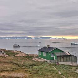 Nach dem Frühstück gingen wir im leichten Nieselregen runter zum Wasser. Der Nebel hing nur noch in den Bergen fest - so konnten wir tatsächlich die Tour noch nachholen. Dieses Mal waren wir nur zu dritt und waren, dank Übung von gestern, auch fix umgezogen. Da wir den Buckelwal schon beim Einsteigen sehen konnten, entschlossen wir uns dazu ihm entgegen zu paddeln. Leider haben wir davon keine Fotos, aber wir konnten ihn bestimmt eine halbe Stunde gut beobachten. Danach tauchte er ab und wir machten uns in Richtung Eis. Dort gab es dann Tee und Kaffee und wir durften unsere Drohne fliegen lassen 😊. Unser tour guide war eine dänische Studentin, die wirklich super nett war und uns auch einiges über das Eis und die Kayak Traditionen in Ilulissat erzählte. Auf dem Rückweg zeigte sich der Buckelwal nochmals 😍 und wir kamen pünktlich zum Start des nächsten Nieselregens wieder an. Vom Wetter passte das perfekt. Nach einem kurzen Mittagssnack gingen wir hoch zum Icefjord Center und schauten uns dort die Aufstellung an. Wieder fing es pünktlich zu regnen an als wir im Gebäude waren 😅. Die Ausstellung ist wirklich sehr modern gemacht und es dreht sich hauptsächlich um die Eisuntersuchungen auf der Forschungsstation auf dem Inlandseis und den Einfluss des Klimawandels auf das Eis. Danach ließen wir den Nachmittag und Abend gemütlich ausklingen und ich machte gegen 10 Uhr nur noch einen kurzen Spaziergang zur Kirche und runter zur Bucht.Read more