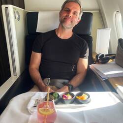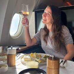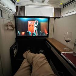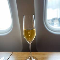 Genüsslich nahm ich meinen grosszügigen Fensterplatz in Beschlag und kurz darauf wurde uns beiden ein Glas Champagner in die Hand gedrückt. Ein Hoch auf das Meilenprogramm ;-)
